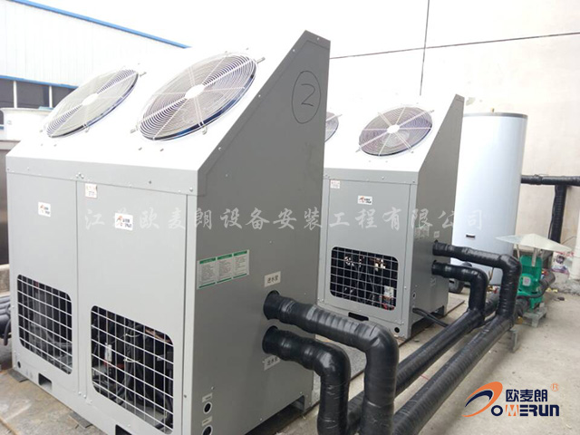 熱水系統(tǒng)配置:2臺(tái)10p歐麥朗雙源熱泵機(jī)組