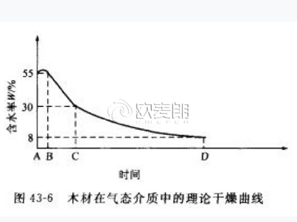 在減速干燥階段,表層的含水率低于纖維飽和點,由內(nèi)層向表面移動的水分?jǐn)?shù)量小于表面的蒸發(fā)強(qiáng)度,干燥速度逐漸緩慢,到干燥終了時等于零,打到平衡含水率。此階段中主要是纖維內(nèi)層的水分向外界排放,溫度不需要、段的烘干溫度設(shè)計在65℃,烘干時間約為60小時,濕度控制在30%~40%之間。