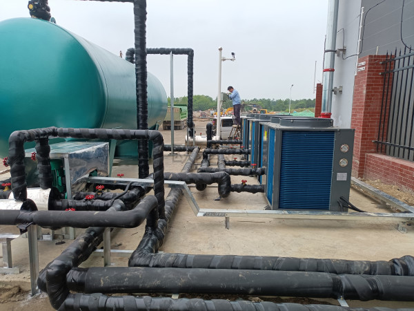 項目配置:3臺歐麥朗空氣能熱泵機(jī)組+1個20噸臥式承壓水箱