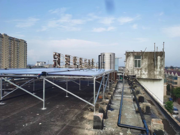 項(xiàng)目配置:8組太陽能集熱器+兩臺(tái)空氣能熱泵熱水器