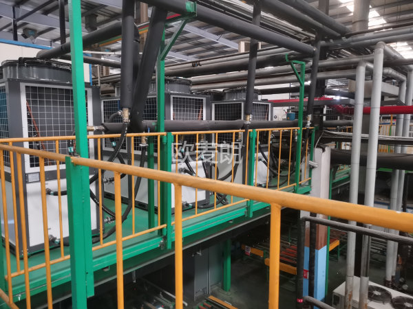 系統(tǒng)配置:兩條生產(chǎn)線改造,每條生產(chǎn)線配置5臺歐麥朗制熱冷回收熱泵機(jī)組