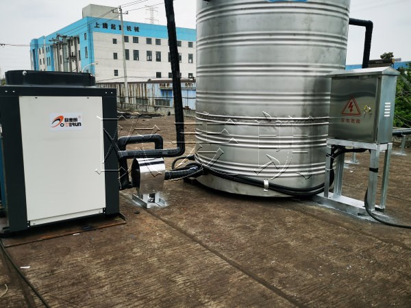 項目配置:一臺歐麥朗空氣能熱泵熱水機組+一個圓形保溫水箱