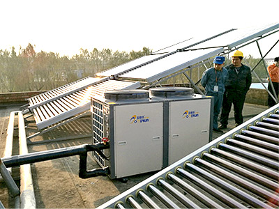 工程設(shè)備:太陽能管式集熱器、空氣能熱泵熱水機(jī)組