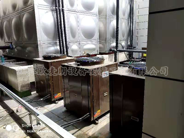 選用5臺(tái)OML-100C-II 10匹空氣能系統(tǒng)加熱。
