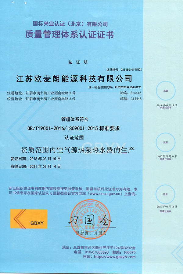 ISO9001:2015質(zhì)量管理體系認(rèn)證證書