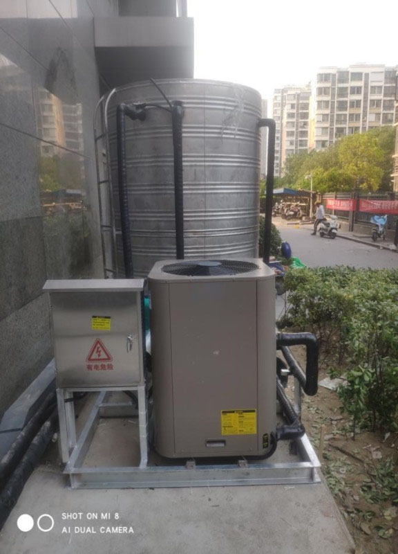 近日,雍禾植發(fā)養(yǎng)殖分部從我市采購(gòu)并安裝一套熱水系統(tǒng),采用一臺(tái)空氣能熱泵熱水機(jī)組來(lái)實(shí)現(xiàn)熱水需求。該機(jī)組為空氣能熱泵一體機(jī),模塊化設(shè)計(jì),在工廠組裝完成整套熱水系統(tǒng),其中包括空氣能機(jī)組、水箱、水泵、控制柜、膨脹閥等,省去了常規(guī)空氣能的安裝步驟,發(fā)貨到工地后直接調(diào)整位置,對(duì)接水管即可。非常便捷。