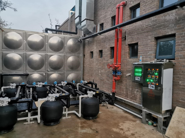 熱水系統(tǒng)主要為室外露天溫泉池以及室內(nèi)洗浴區(qū)熱水的保障,保持室外溫泉池的恒溫,并每個池水都配置一套過濾凈化的砂缸系統(tǒng),在換熱的同時保障每個池內(nèi)的水質(zhì)潔凈。設(shè)備組成為3臺熱泵熱水機組一個50T保溫水箱,配套11套過濾砂缸系統(tǒng)以及11套高效換熱器結(jié)合定制的恒溫控制系統(tǒng)。確保每個溫泉池處于一個相對合適的溫度環(huán)境。