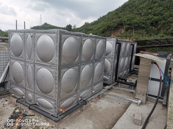 熱水系統(tǒng)配置:30噸方形水箱,3臺25P高溫?zé)岜脵C(jī)組