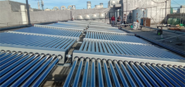 配置:10組太陽能集熱器,一臺7匹空氣源熱泵,客戶自己有水箱,控制柜里加上計時器,以實(shí)現(xiàn)分時供水功能。
