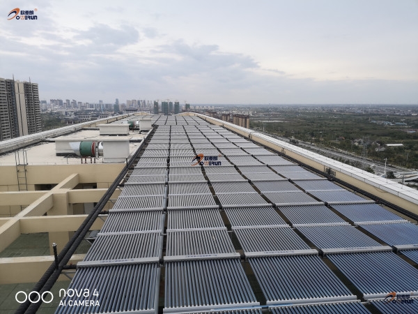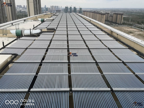 項目配置:3000平太陽能集熱器+兩套承壓熱水系統(tǒng)