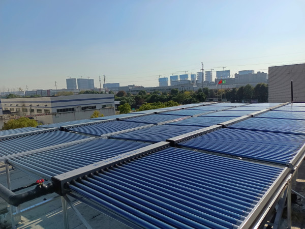 為響應(yīng)國(guó)家節(jié)能環(huán)保的號(hào)召,企業(yè)對(duì)員工生活熱水系統(tǒng)進(jìn)行了改造。員工宿舍每天需要大概7噸熱水。改造前公司采用高溫蒸汽加熱熱水,這樣每天需要專人去看管,使用費(fèi)用很高,而且使用高溫蒸汽存在一定的安全隱患。改造后,系統(tǒng)采用12組58*1800-50管太陽(yáng)能集熱器,一臺(tái)空氣源熱泵,利用原有的保溫水箱來滿足熱水需求。晴好天氣時(shí),太陽(yáng)能吸收的熱量對(duì)水箱的水直接加熱,以滿足使用需求,在陰雨天和雨雪天氣,太陽(yáng)能不能滿足使用需求時(shí),系統(tǒng)自動(dòng)啟動(dòng)空氣源對(duì)水箱進(jìn)行二次加熱,以滿足使用需求,整個(gè)系統(tǒng)全自動(dòng)運(yùn)行,無(wú)需專人看管,而且極大的降低使用成本。