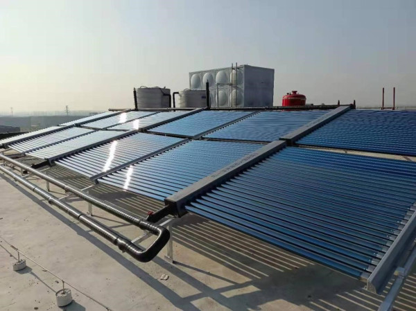 針對(duì)新廠房辦公樓30人加上食堂熱水需求,歐麥朗公司建議配置3噸熱水,6組太陽(yáng)能集熱器+空氣能雙水箱控制,晴好天氣時(shí)充分利用太陽(yáng)能加熱,避免了陰雨天輔助能源啟動(dòng)加熱過(guò)多的冷水,以最大化節(jié)省能源。目前熱水已安裝調(diào)試完畢,通過(guò)驗(yàn)收。