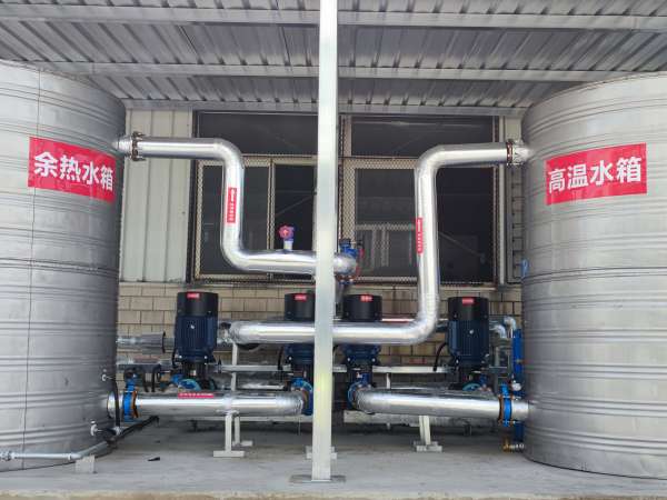 2、2 臺(tái)空壓機(jī)作為熱源到余熱水箱(50-60℃),給我司余熱冷回收機(jī)組當(dāng)熱源,通過(guò)壓縮機(jī)由低熱轉(zhuǎn)換為高熱,至換熱水箱(80-90℃),通過(guò)管路送至每個(gè)發(fā)泡車(chē)間的散熱點(diǎn)。