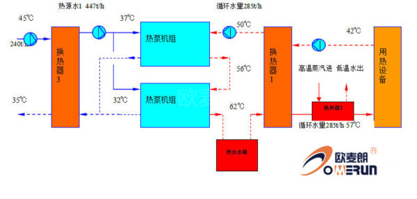 歐麥朗熱泵的特點就是將環(huán)境中或者工業(yè)廢熱中的低溫廢熱(熱水、熱風等),變成滿足用戶需求的高溫熱能,只消耗少量的電能,就能將這些低溫熱能變廢為寶,再次利用起來。下面為大家介紹下相關(guān)應(yīng)用案例!