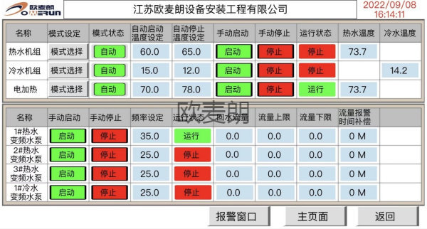 之前的耐高溫超濾膜清洗溶液加熱都是采用常規(guī)的電加熱方式!耗電量高,用電成本大。且需專人看管。不能實(shí)現(xiàn)全自動(dòng)加熱。歐麥朗空氣源熱泵機(jī)組就解決了這方面的問題。它的用電量是電加熱的四分之一,能源節(jié)省75%左右,大大降低用電費(fèi)用!且機(jī)組配備智能控制系統(tǒng),無需專人看管。設(shè)置好溫度后,機(jī)組全自動(dòng)運(yùn)行。同時(shí)配備PLC遠(yuǎn)程控制功能,可在手機(jī)、電腦上操控機(jī)組運(yùn)行,了解設(shè)備運(yùn)行情況,便于調(diào)整運(yùn)行模式。