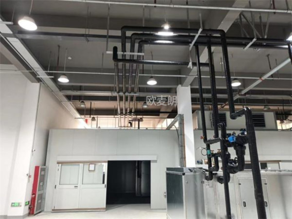 近期,某木器水性漆懸掛線需要恒溫恒濕控制,歐麥朗設(shè)計(jì)的水性漆懸掛線烘干房,采用3臺(tái)50P單冷空氣源熱泵給系統(tǒng)除濕,將烘房相對(duì)濕度控制在30%左右,本系統(tǒng)采用2臺(tái)300KW低氮冷凝爐產(chǎn)生高溫?zé)崴?,確保整個(gè)懸掛線體恒溫在60攝氏度,濕度在25%左右。
