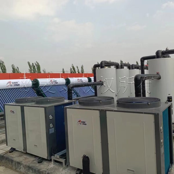 無動力太陽能熱水系統(tǒng)是一種高效太陽能熱水系統(tǒng),集熱系統(tǒng)由開式儲熱水箱、閉式波紋管換熱器、真空管等組成,承壓式熱泵熱水系統(tǒng)由熱泵主機、電加熱水箱和多個儲熱水箱組成。