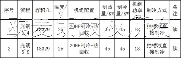注:1、增加兩臺冷熱機組直接對應(yīng)酸銅1-4、5-8槽直接抽槽液制冷;