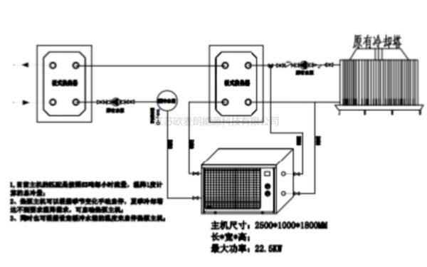 1、廠家根據(jù)計(jì)算采用一臺(tái)水源熱泵給設(shè)備循環(huán)水降溫。