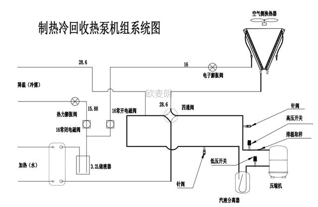 制熱冷回收熱泵機(jī)組是一種利用熱泵技術(shù),將制熱和制冷相結(jié)合的新型設(shè)備。它的工作原理是:通過壓縮機(jī)將制冷劑壓縮成高溫高壓氣體,然后經(jīng)過冷凝器將熱量傳遞給冷水,制取熱水;同時,制冷劑經(jīng)過膨脹閥降壓后,變成低溫低壓氣體,再經(jīng)過蒸發(fā)器吸收空氣中的熱量,使空氣溫度降低,從而起到降溫效果。