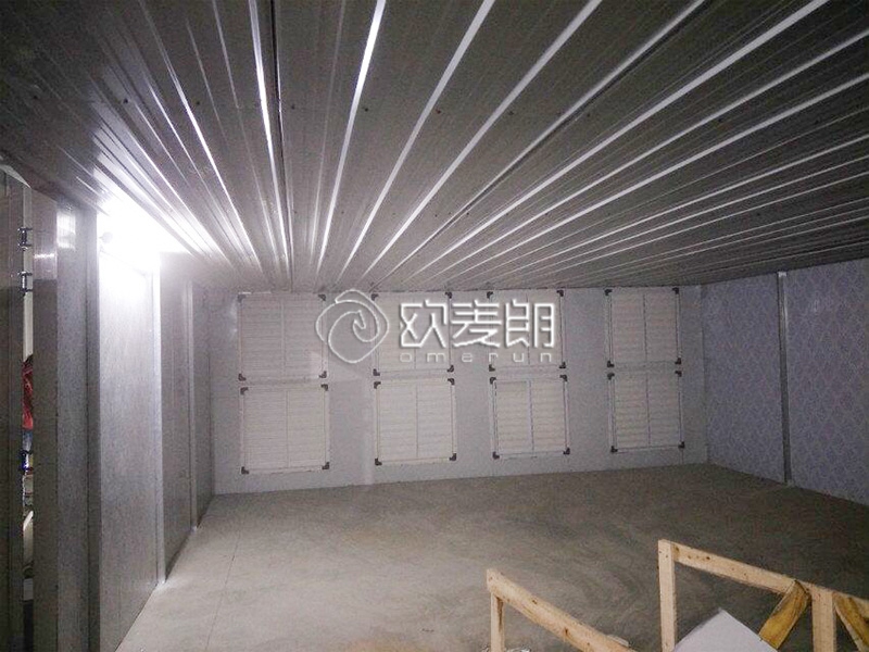 本設備為分體式結構,主機可放在烘房外,也可放在車間外,室內室外均可安裝,內風柜置于烘房內,根據(jù)風道需求可用于直吹,也可安裝在回風道上,用銅管相連,安裝靈活方便,。