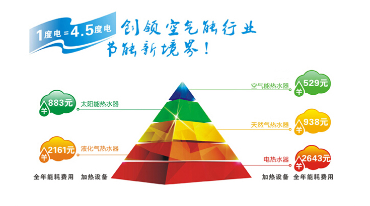 6、綠色:采用熱泵技術(shù),與其它常規(guī)熱水設(shè)備(如:燃油鍋爐、燃?xì)忮仩t、電鍋爐等)相比可節(jié)省65%~80%的運(yùn)行費(fèi)用,對環(huán)境。