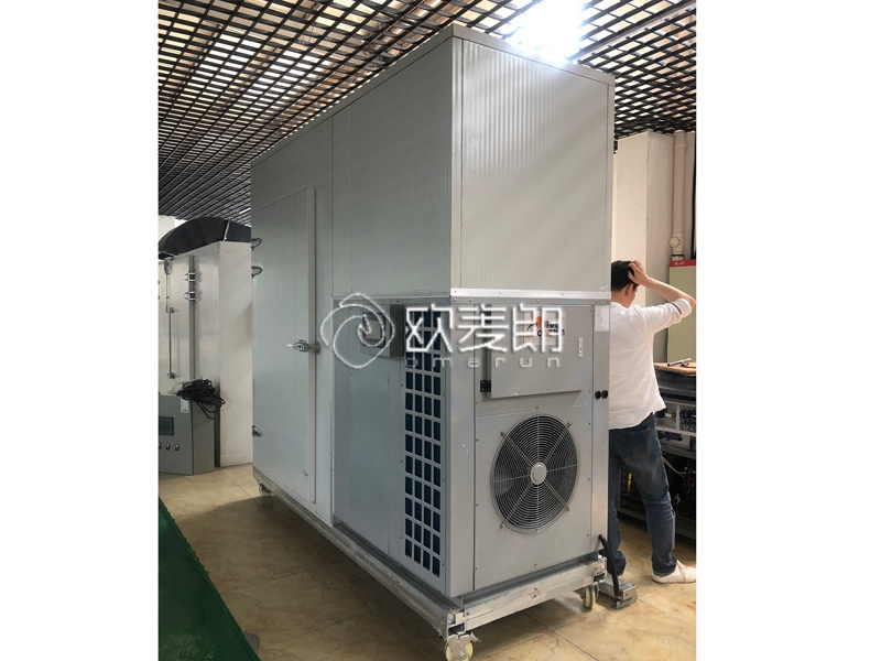 本設(shè)備為整體式結(jié)構(gòu),內(nèi)置循環(huán)風(fēng)機(jī),主機(jī)需放在烘房內(nèi),避免了熱量的損失,同時(shí)也省去了連接銅管,抽真空,布置線路的繁瑣的工序,安裝非??旖?,