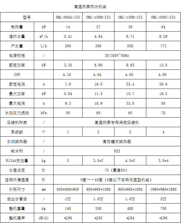 采用卡諾循環(huán)原理,電能驅(qū)動(dòng),以制冷劑為吸熱體,從空氣中吸收熱量制取熱水。采用進(jìn)口品牌壓縮機(jī),引進(jìn)美國(guó)第五代雙螺旋殼管式熱交換器,吸收環(huán)境中的熱量,水電分離,。熱泵定位:低溫環(huán)境熱泵(北方)、常規(guī)熱泵、中溫?zé)岜谩⒏邷責(zé)岜?。目前市?chǎng)上80%的熱泵都是常規(guī)熱泵,出熱水溫度55度,宿舍樓生活用熱水安裝較普遍;中溫?zé)岜媒鼛啄晖茝V多用于工業(yè)熱水,出熱水溫度不高于80度,這兩款基本滿足取暖、烘干、洗滌、醫(yī)藥、化工、布染固色、農(nóng)業(yè)、澡堂、實(shí)驗(yàn)室、恒溫室,且投資性價(jià)比高,用戶容易接受。生產(chǎn)設(shè)計(jì)工藝:除了常規(guī)和中溫?zé)岜糜靡患?jí)壓縮機(jī)工作原理,低溫和高溫的熱泵必須采用二級(jí)變頻壓縮機(jī)、熱能回收、壓縮機(jī)機(jī)械能轉(zhuǎn)換等工作原理。常規(guī)和中溫?zé)岜靡揽靠諝庵袩崮艿闹茻?。而低溫和高溫?zé)岜檬且揽靠諝饽苤茻?0%,壓縮機(jī)機(jī)械能轉(zhuǎn)換熱能10%,熱能回收30%.所以二級(jí)高溫?zé)岜檬芸諝饽苡绊懖幌褚患?jí)壓縮機(jī)動(dòng)力系統(tǒng)那么大。