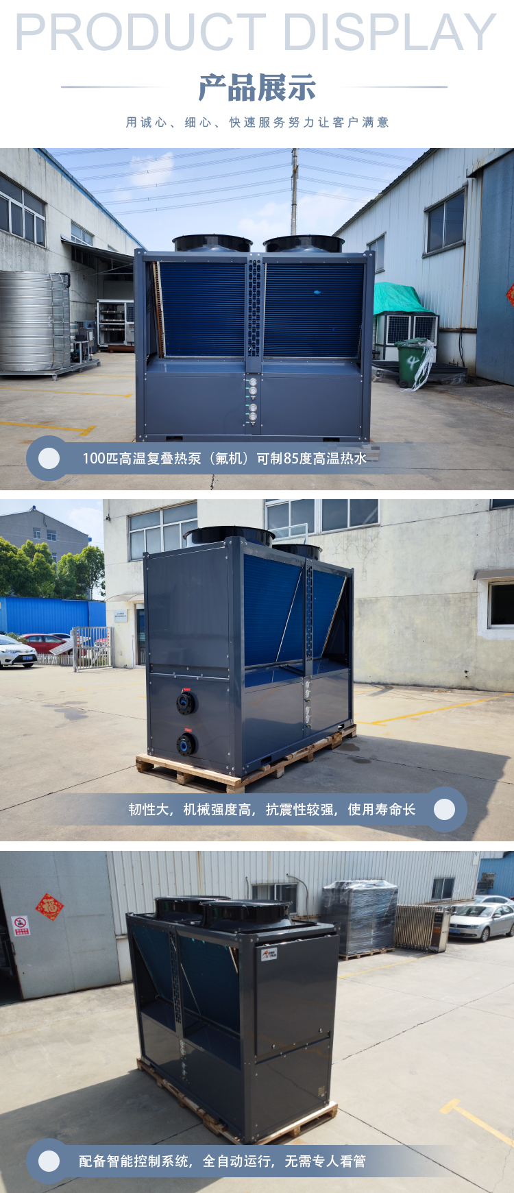 簡介:100匹高溫復(fù)疊熱泵,可制85℃高溫熱水,可用于電鍍廠、印染廠、化工、醫(yī)藥、金屬前處理、屠宰場等企業(yè)高溫用水需求!
