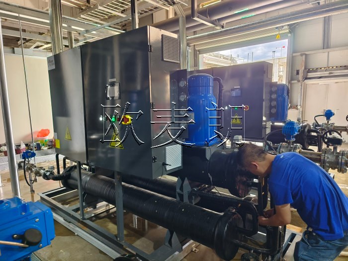 項目概況:浙江義烏某工廠為滿足生產(chǎn)用純水加熱需要與歐麥朗合作,采購一套高溫水源熱泵機組!
