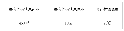 每套養(yǎng)殖池:表面積450㎡,容積450m?;每天補充新水0.2%之間;設(shè)計要求:溫度水池溫度維持在24-30℃之間。
