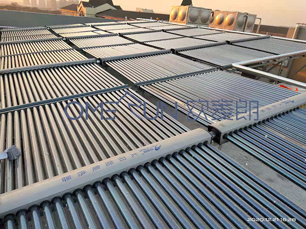 工程概況:上海某實驗學校占地面積42283平方米,建筑面積20850.4平方米。目前,小學一、二年級共8個班,初中六、七年級共12個班,在校學生752人,加上老師及工作人員,有超過800人的在校人數(shù)。當初該學校熱水項目負責人表示,要保障師生的良好沐浴體驗,在用水高峰期保障用水體驗,在不用水時,竟可能的節(jié)能經濟,還要安全環(huán)保。在經過多次溝通與商討,歐麥朗制定的太陽能結合空氣能熱水系統(tǒng)打動了學校領導的心。