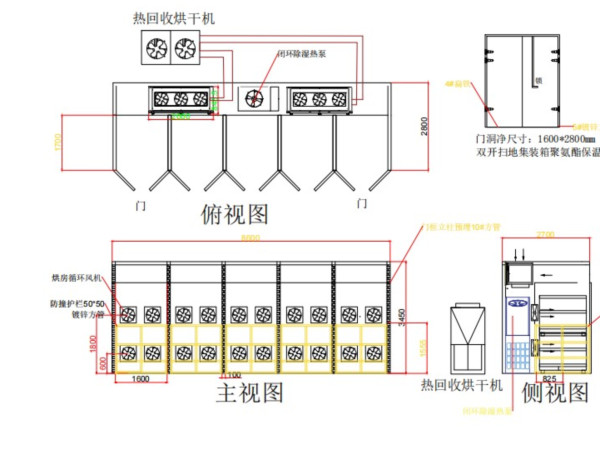 4、烘房尺寸長8600mm*深2750mm*高3450mm,每間烘房獨立控制啟停。