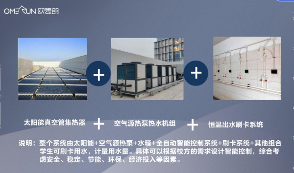 江蘇歐麥朗公司是空氣能熱泵、太陽能系列產(chǎn)品生產(chǎn)廠家。旗下設有安裝工程公司是專門承接空氣能、太陽能熱水工程、商用冷暖熱泵空調工程、熱泵烘干工程、余熱回收系統(tǒng)工程等。為客戶提供“太陽能+”“空氣能+”多能源組合的解決方案,為客戶節(jié)約、降耗,余熱回收,能源再利用。承接學校熱水工程改造和新建項目十多年,有著實戰(zhàn)的經(jīng)驗。