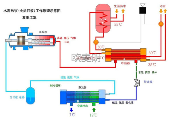 制熱冷回收熱泵熱水機(jī)組工作原理