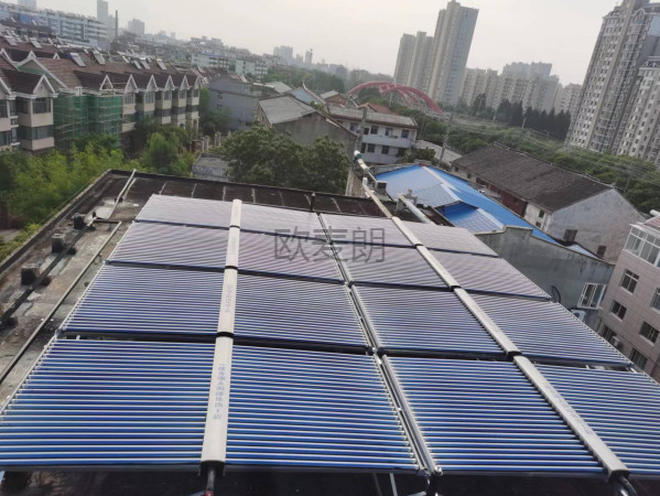 靖江醫(yī)保職工康復(fù)醫(yī)院熱水系統(tǒng)改造方案:將原來的太陽能整體拆除,管道采用原先設(shè)計(jì)管道,增加集中太陽能進(jìn)行供熱,空氣能進(jìn)行輔助。采用8組50管太陽能集熱器+兩臺歐麥朗空氣能熱泵熱水機(jī)組!