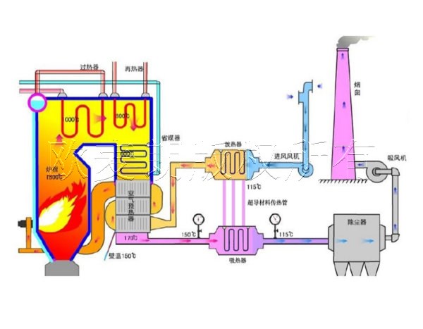 電廠鍋爐的排煙溫度一般在120℃~350℃,煙氣中有7%~25%的顯熱和15%的潛熱未被利用就被直接排放到大氣中。這不僅造成大量的能源浪費(fèi)也加劇了環(huán)境的熱污染;一方面,我們?cè)O(shè)計(jì)的高效煙氣余熱回收裝置能夠滿足鍋爐新風(fēng)加熱的需要,也能夠?qū)㈠仩t的排煙溫度冷卻至100度使得鍋爐的工作效率顯著提高。另一方面,也為全國(guó)藍(lán)天白云環(huán)保事業(yè)做出了應(yīng)有的貢獻(xiàn)。