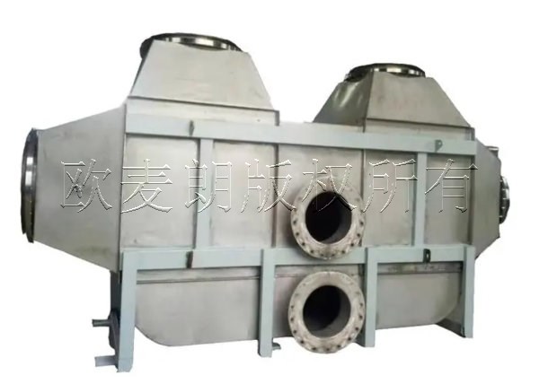 熱焚燒爐處理過(guò)的廢氣溫度仍處于高溫狀態(tài),含有的余熱資源高,這是因?yàn)閺U氣中VOCs濃度較高時(shí),廢氣氧化后會(huì)產(chǎn)生多余的熱量,從熱氧化室引出850℃~1000℃的高溫?zé)煔?,進(jìn)行余熱回收可以采用歐麥朗開發(fā)的HEU高效余熱回收器,它是一種常用于中高溫廢氣余熱回收使用的,經(jīng)常安裝在鍋爐煙口和煙道中,將煙氣余熱回收后的熱量來(lái)加熱空氣,或是回收后的熱風(fēng)用于助燃烘干物料。