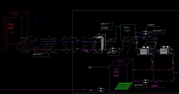 1、采用歐麥朗制熱冷回收型熱泵2臺, 吸收高溫廢熱通過板式換熱器換熱溫度約為35-40℃,同時產(chǎn)生90熱水。節(jié)能優(yōu)化,并保證系統(tǒng)的安全。