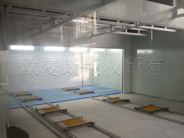 此次我們?yōu)榭蛻艏揖咚云岷娓墒褂枚ㄖ圃O(shè)計的烘干熱泵機組來實現(xiàn)的。我們根據(jù)生產(chǎn)線作業(yè)需要,配置了3臺歐麥朗熱泵烘干機,一個500平的烘房,在烘房頂部配置了自動懸掛線。烘房內(nèi)部均勻擺放多臺風(fēng)機盤管,用于高溫?zé)犸L(fēng)的輸送。當(dāng)水性漆噴涂完畢后,家具由懸掛線進入烘房內(nèi),再由高溫?zé)犸L(fēng)烘干后在輸送出烘房。