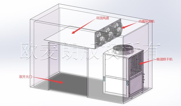 5).主機:采用1臺7P冷凝除濕烘干設(shè)備,輸入功率6.5KW,采用純內(nèi)循環(huán)冷凝除濕模式,無任何外排廢氣,溫度設(shè)定區(qū)間10-60℃。